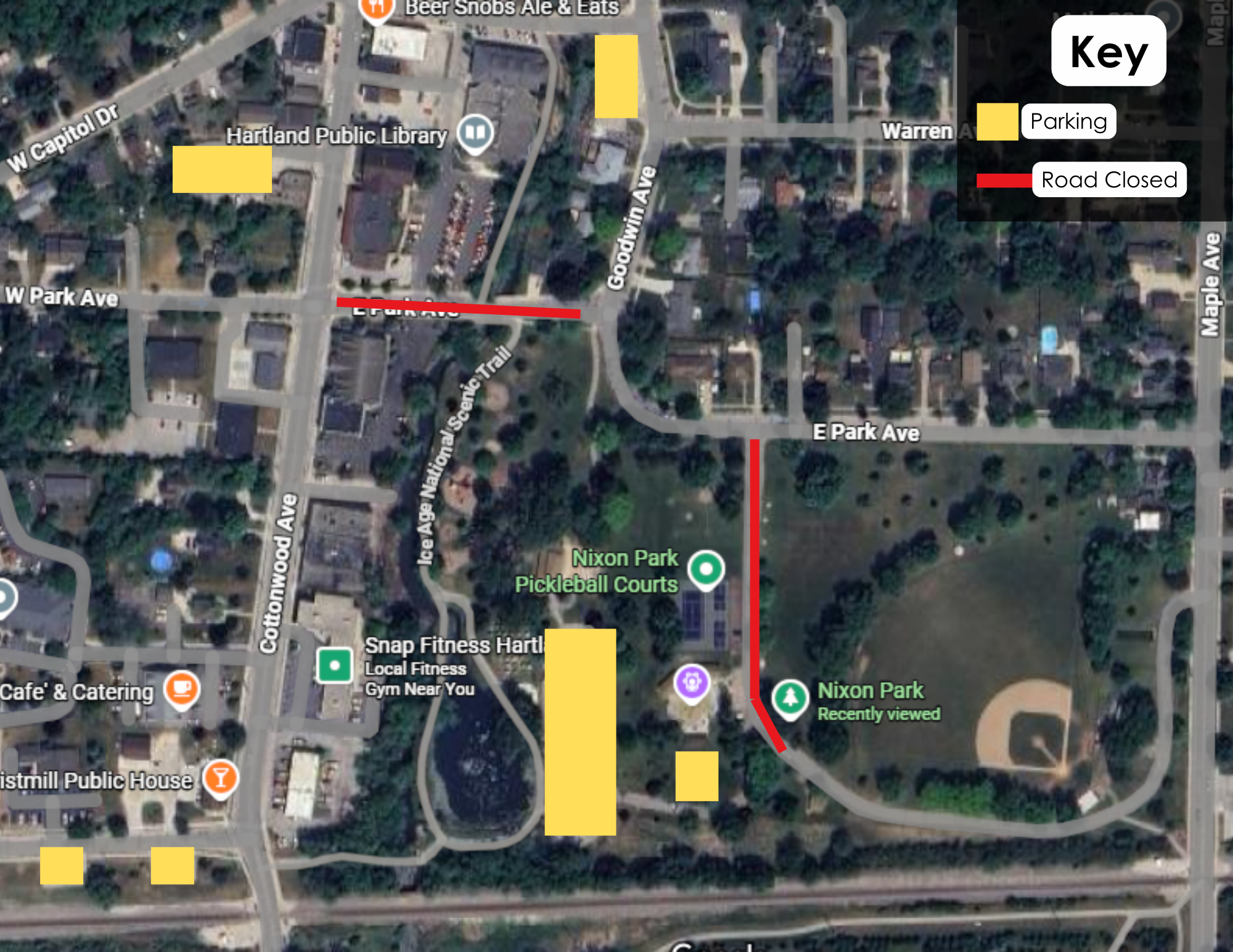 There is no parking along E. Park Avenue. View the Pumpkin Party Parking Map for area parking.
